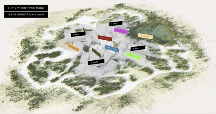 每个社区内住宅区域、生活设施、医疗机构和娱乐设施,因此,居民的所有日常所需,在五分钟步行路程内可解决。